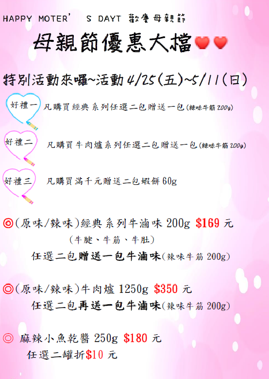 凡購買牛肉爐系列任選二包贈送一包(辣味牛筋200g)