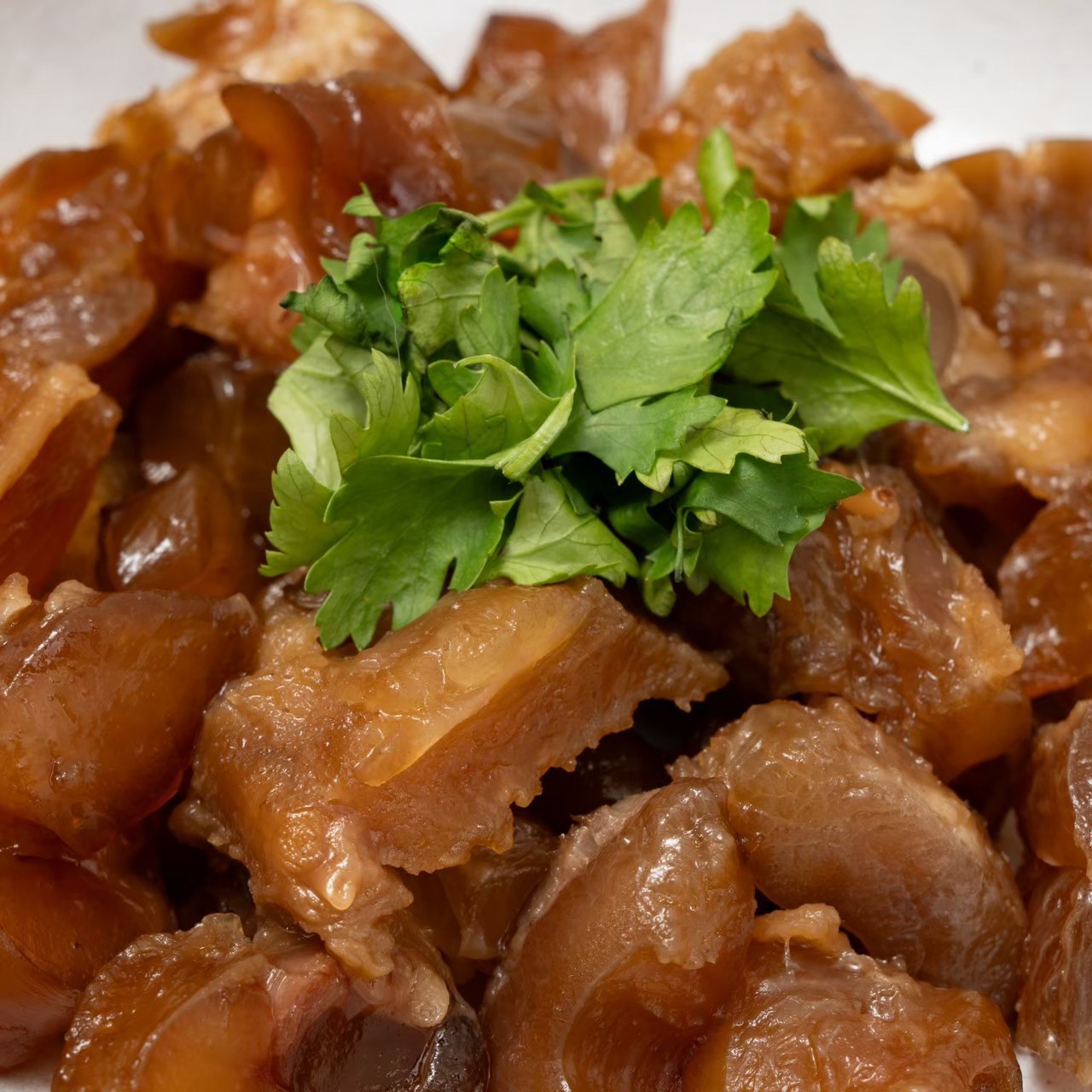 內容物:牛筋、水、醬 油、米酒、冰糖、洋蔥、蔥、鹽巴、老薑、蒜頭、味精、白胡椒、大辣椒、焦糖色素、八角、花椒粒、